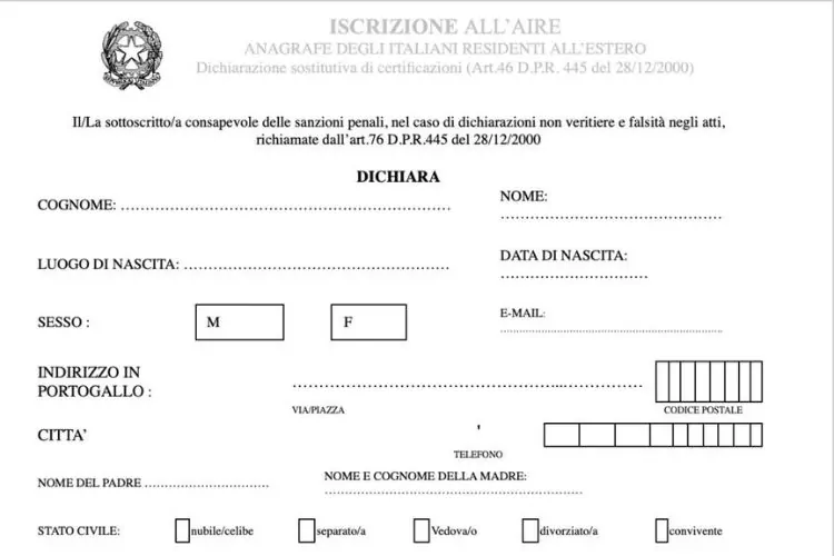 - Formulário de requerimento do AIRE preenchido e assinado. Esse formulário está disponível diretamente no site do consulado;
